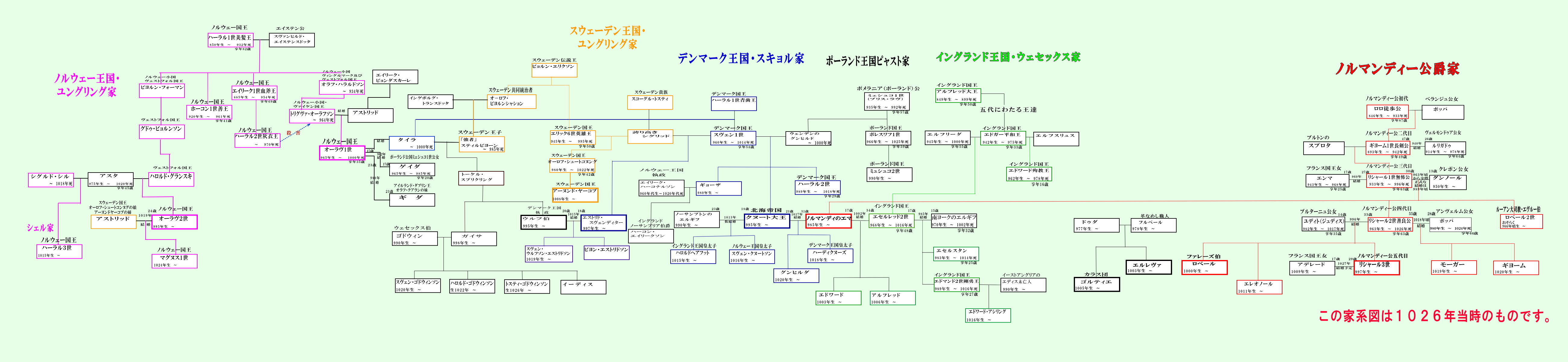 クヌート1世とウルフ伯周辺家系図(図をクリックすると拡大します)
